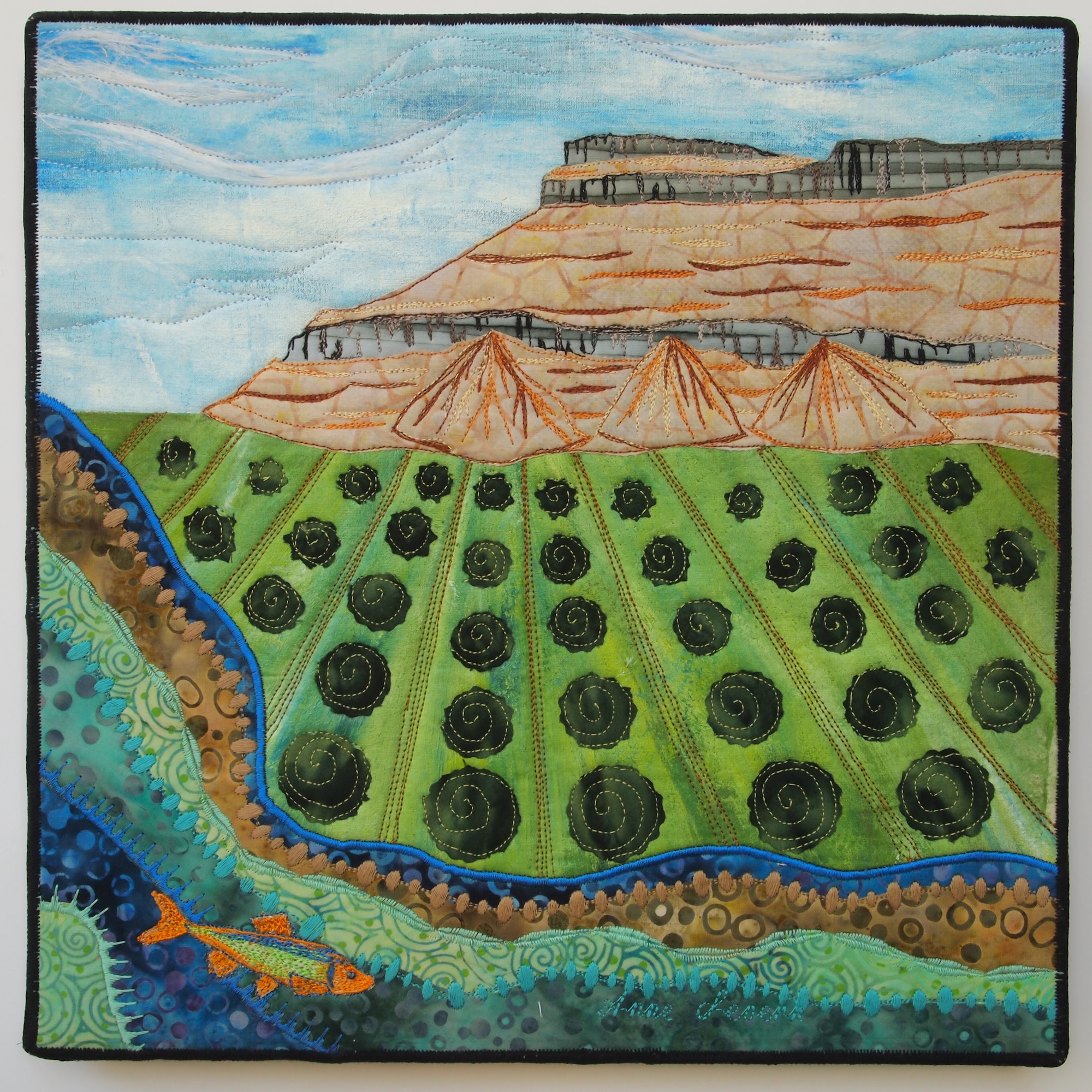Anne Severn turns the geology and wild color of the American West into contemporary art quilts. She hand-dyes and paints her fabrics to build vivid, layered pieces inspired by landforms, strata, and natural patterns.